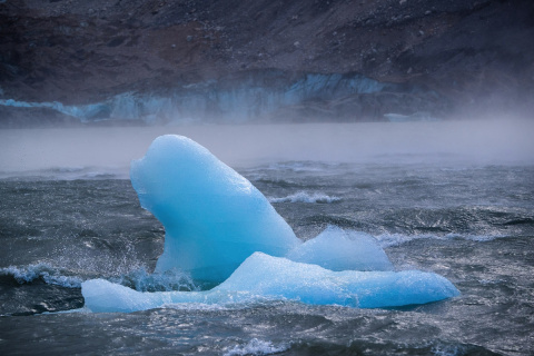 Мы встали еще до рассвета, чтобы увидеть, что даже такого шквального ветра оказалось недостаточно, чтобы разогнать тучи над Серро Торре. Но его оказалось вполне достаточно, чтобы сломать несколько крупных веток прямо в лагере. А когда мы вышли к озеру, изо всех сил противостоя ветру и пригибаясь к земле, то увидели, что этой ночью ураган оторвал от ледника здоровенный, с многоэтажный дом, айсберг и играюче гоняет его по мутной воде у самого берега. А огромные волны перехлестывают ледяного исполина сверху. Над всем этим сияла двойная радуга. Небо над ней было черным, но прорывающиеся сквозь тучи солнечные лучи наполняли глыбы льда ярко-голубым светом. Летящие параллельно земле брызги воды искрились на солнце и иглами били по лицу.