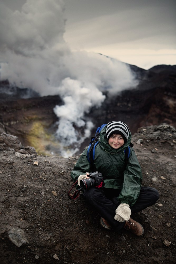 Вероника тоже много работала, много путешествовала и не знала, что есть я. Но зато знала про Камчатку и очень хотела туда попасть. Когда она узнала о фото-туре на Камчатку, мест в группе уже не было. Но потом кто-то отказался, так что она все-таки попала на край света. Где бродила между дымящими фумаролами, снимала кислотные озера в кратерах вулканов и чуть было не попала на ужин медведю. Это произошло в сентябре.