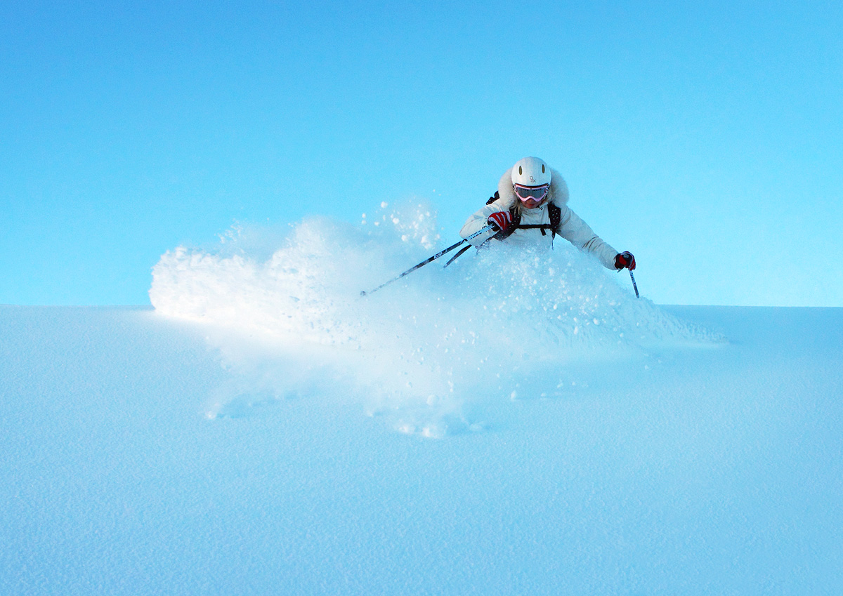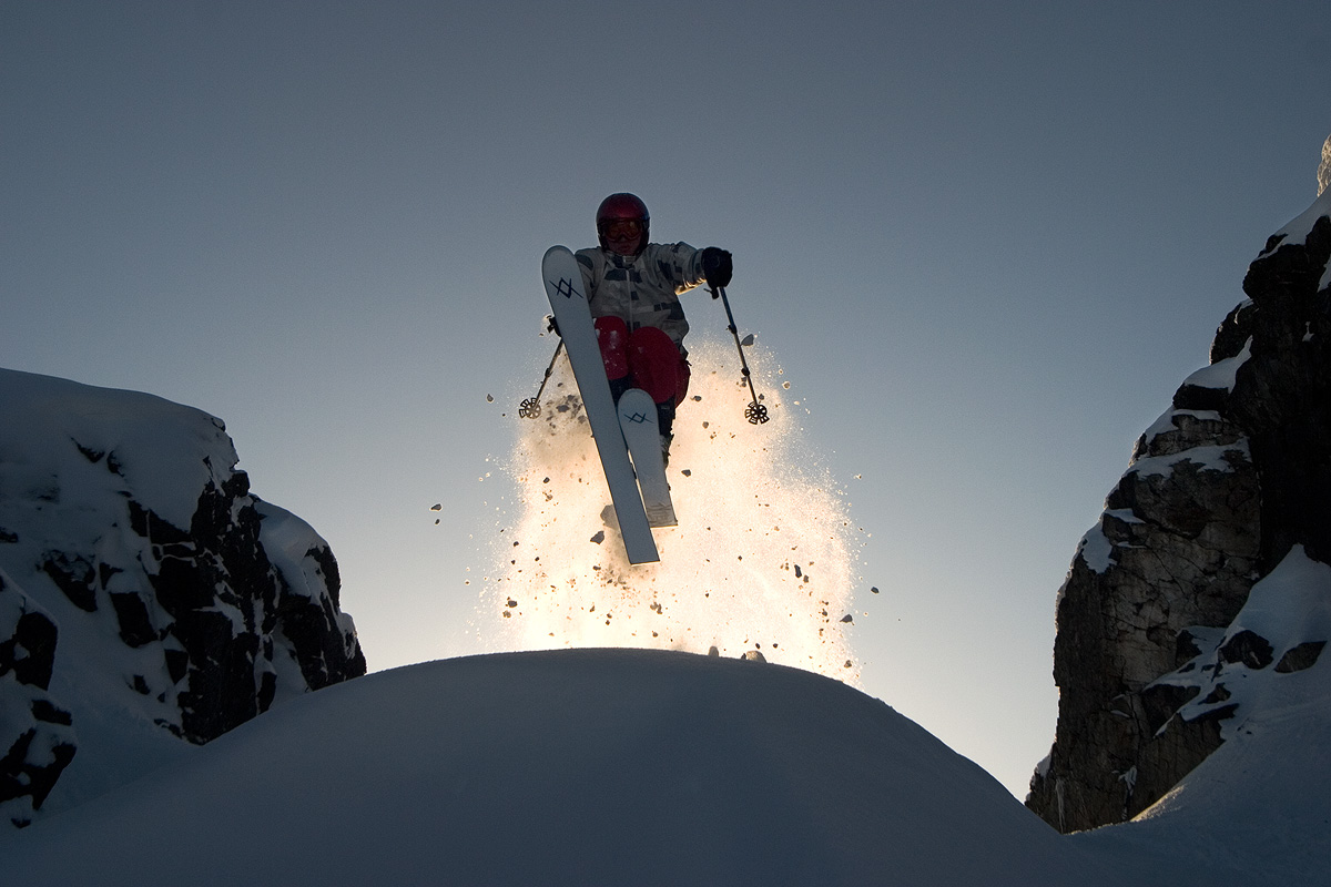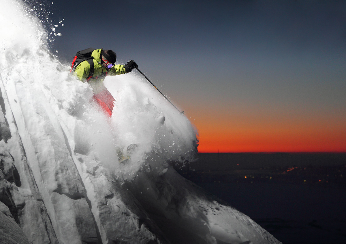 Мой опыт работы в студии даёт мне возможности лучше использовать свет и разность в освещении объекта съёмки и заднего плана. Понимая, как именно расположено солнце, можно выстроить кадр так, чтобы эффектнее показать снежный шлейф лыжника.