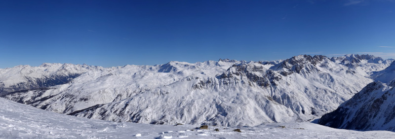 5.Самая дальняя зона, попасть сюда можно только на ски-туре. Наверху открывается отличный вид на доминанту района – трезубец Les Aiguilles D’Arves. Если ехать из Valmenier, то нужно спуститься в Les Verneys, и двигаться вверх по долине по трассе для беговых лыж. Подъем к снежным полям начинается напротив взлетной полосы. В средней части ущелья построена уютная хижина, где можно переночевать (есть газ, печка, оплата на месте).