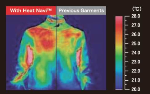 Волокна Heat Navi™ обеспечивают великолепную теплоизоляцию, даже при использовании в подкладке и внутренних слоях одежды. В то время как свет в видимом диапазоне не проникает через внешнюю ткань, длинноволновая (инфракрасная) часть спектра проникает глубже. Применение волокон Heat Navi™ в подкладке позволяет использовать энергию инфракрасного излучения и согревать даже в условиях минимальной физической активности.