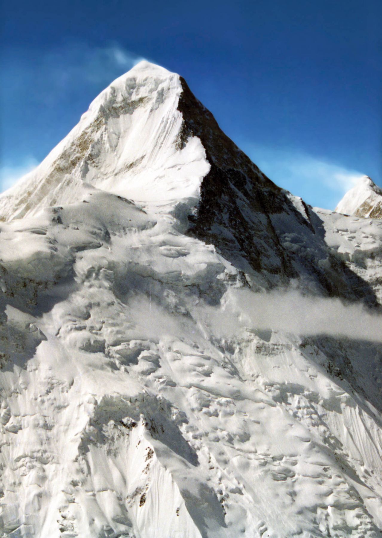 Однако на вершине покорители заметили еще одну главенствующую точку, которая по высоте могла быть выше Хан-Тенгри. Только через 12 лет экспедиция военных топографов установила, что эта гора почти на полкилометра выше. Так на картах появился пик Победы (7 439 метров).