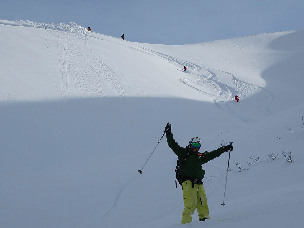 Катание с гидом даёт не только снижение рисков, но и эффективность. Я имею в виду, что в хороший день это позволяет сконцентрироваться на катании и не терять время на выбор спусков и поиски возвращения к подъёмнику. Рельеф в КП очень интересный, но линии спуска полностью от старта не просматривается, часто встречаются ловушки рельефа, заблудиться и найти ненужных приключений легко, а полноценного гайдбука нет. Так что рекомендую покататься с гидами как минимум при первом посещении курорта.