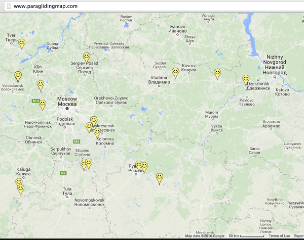 Стартовать удобнее всего со склона, а в равнинной местности самый доступный способ подняться в небо - это лебёдки, позволяющие запускать пилота в небо наподобие воздушного змея. В Подмосковье полёты возможны с расстояния примерно в 100 км от столицы (смотри карту), где заканчиваются зоны влияния аэропортов.