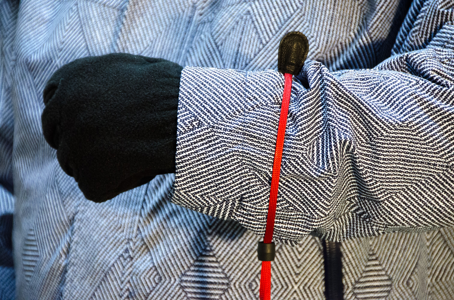 Пользуясь моментом, поделюсь с вами одним трюком. Если перчатки, висящие на лише, мешают что-либо делать, засуньте их под мышки, не снимая с лиша, и они перестанут мешать.
