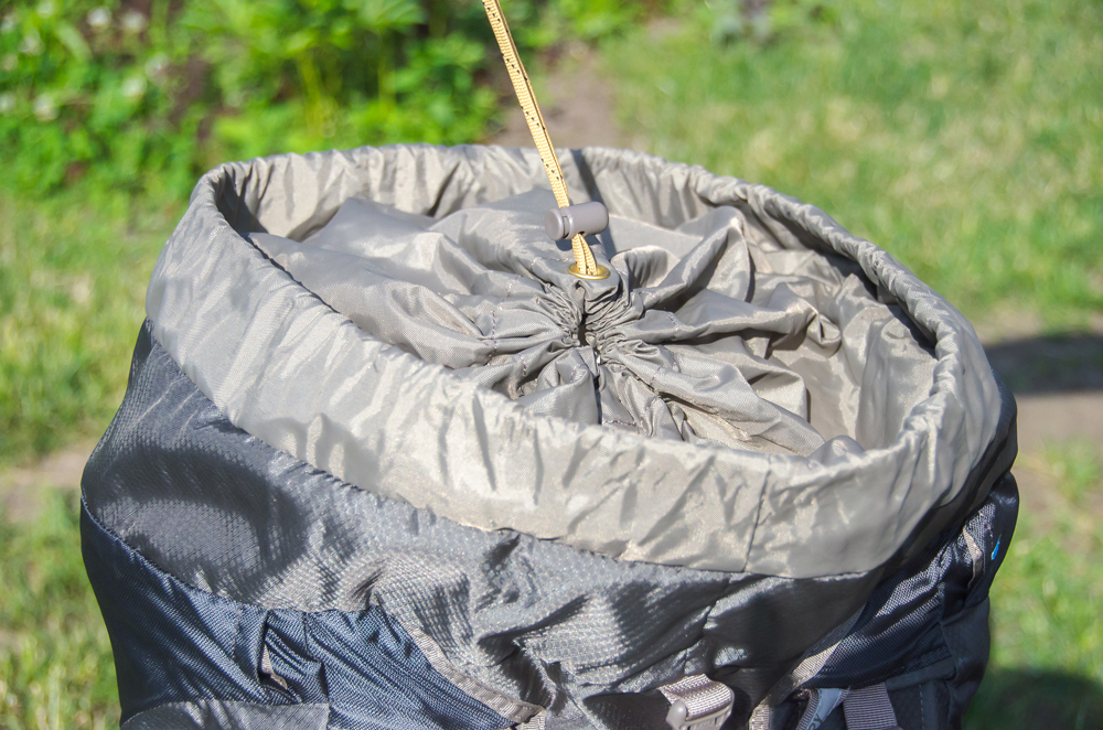Тоже отлично! 80 литров, но благодаря большому количеству дополнительных петель и лямок рюкзак очень хорошо расширяется. Кроме того верхний клапан не пришит к спинке, а крепится на длинных стропах. И, кстати, его точка крепления – у лямок на системе развеса, что позволяет забивать клапан и не думать о том, что он будет оттягивать верхнюю часть рюкзака. Благодаря этому рюкзак можно легко расширить, засунув что-нибудь между клапаном и верхним входом.