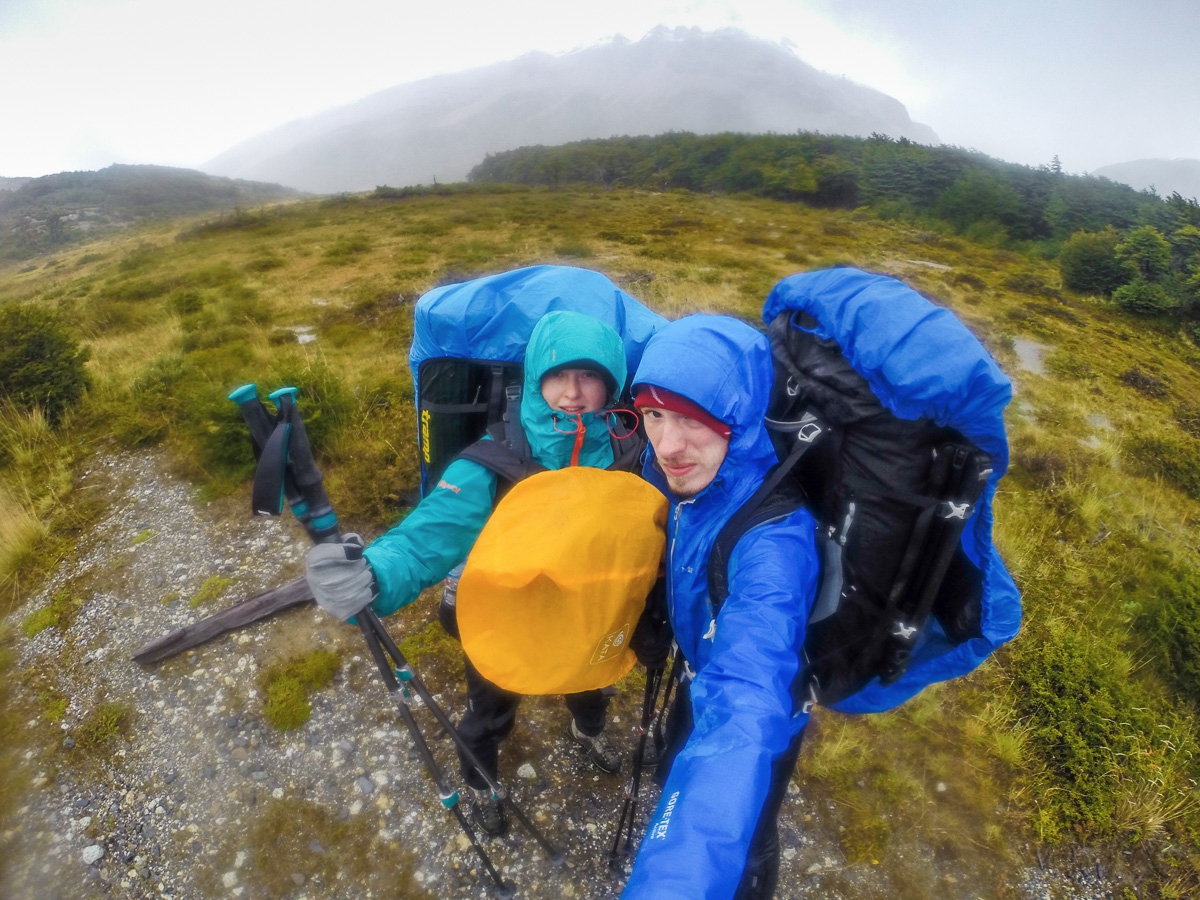 На тропу к лагерю Поинценот, что у подножия Фиц Роя мы выходили в приподнятых чувствах. Рассвет был, кадры есть, впереди новая гора и надежда, что уж здесь-то нас ждет удача. Тропа от озера Торре до Поинценота оказалась не такой уж и сложной. Крутой подъем закончился километра через три и сменился нудным переходом по ровному. Палатку мы, по доброй традиции ставили под стук дождя.