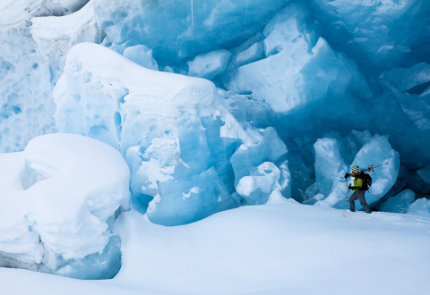 - Обвязка, карабины, альпинистская подготовка для того, чтобы вытащить друга, провалившегося в трещину ледника.
