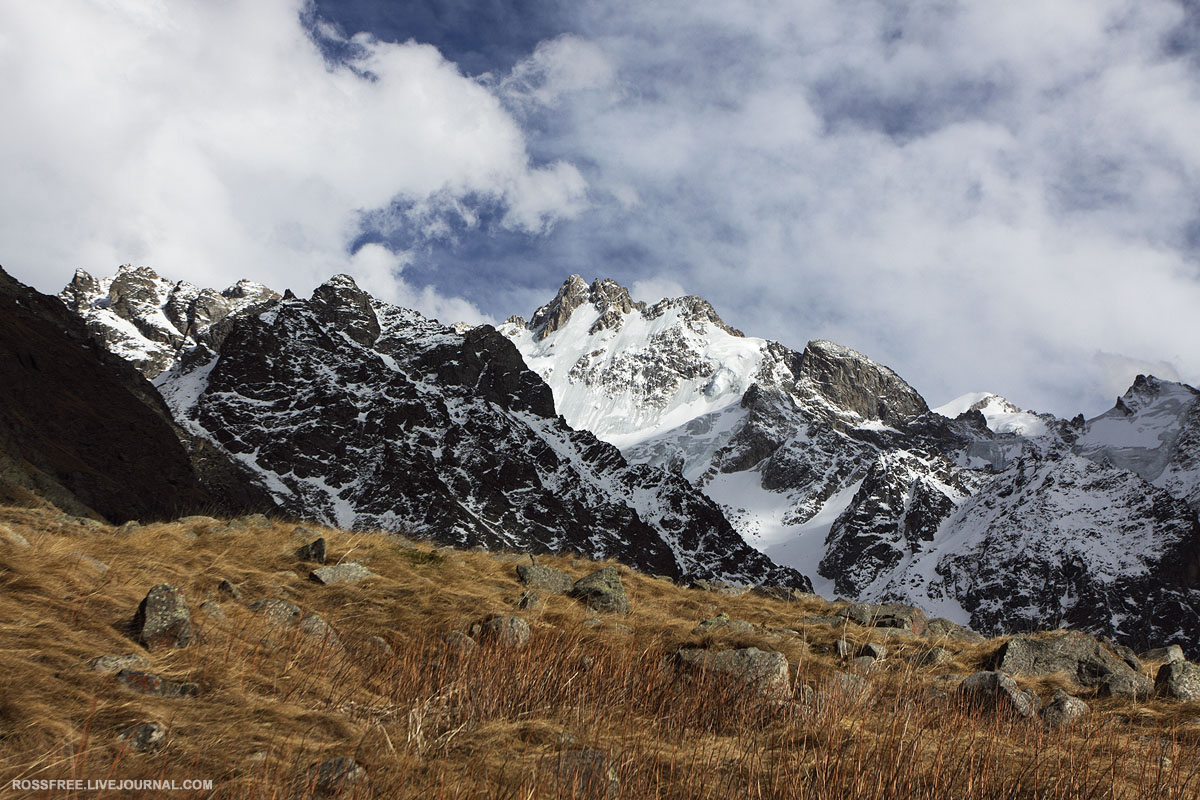 Поездка подходила к концу, проводили Володю домой. Прогулялись по леднику Безенги к хижине Джанги-кош. Правда, до хижины не дошли – погода испортилась, повернули обратно. И правильно, дождь лил еще сутки, на обратном пути тропинку бомбило камнями со склонов. В общем, решили не жадничать и оставить Джанги-кош на следующий сезон.