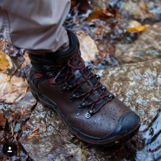 У Keen Feldberg WP верхняя часть кожаная, подкладка с мембраной KEEN Dry и шнуровка с металлическими колечками, что роднит их с классическими туристическими ботинками.