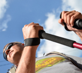 По конструкции ручки, здесь довольно много вариантов, используется и несколько типов резины, и пробка, и пластик, в общем, это зависит от основного назначения палки и для меня большой роли не играет. Удобно, когда ниже ручки сделано продолжение из неопрена или резины - если нужно быстро перехватить палку пониже, например на коротком траверсе. Обычно это характерно для треккинговых моделей, ну и кататься такое решение тоже не мешает, разве что немного увеличивает вес.