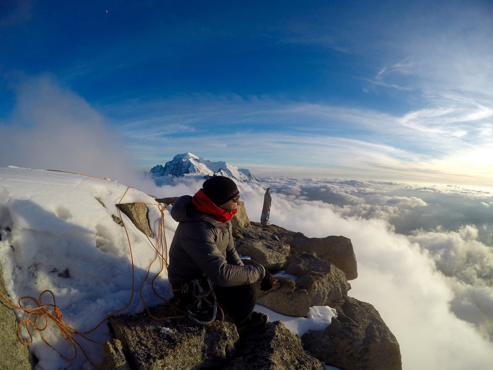 Пока бейсеры расправляли свои крылья и чистили пёрышки, я нашел простую дорогу, по которой все идут в обход. На одной из вершин рожденные ползать разделились. Одни научились летать и улетели с маленькой, но гордой вершины L’M, которая, когда вырастет, станет известной как Petit Dru. Другие, так и не научившись летать, сползли c горы на своих кривых, как простые альпинисты.