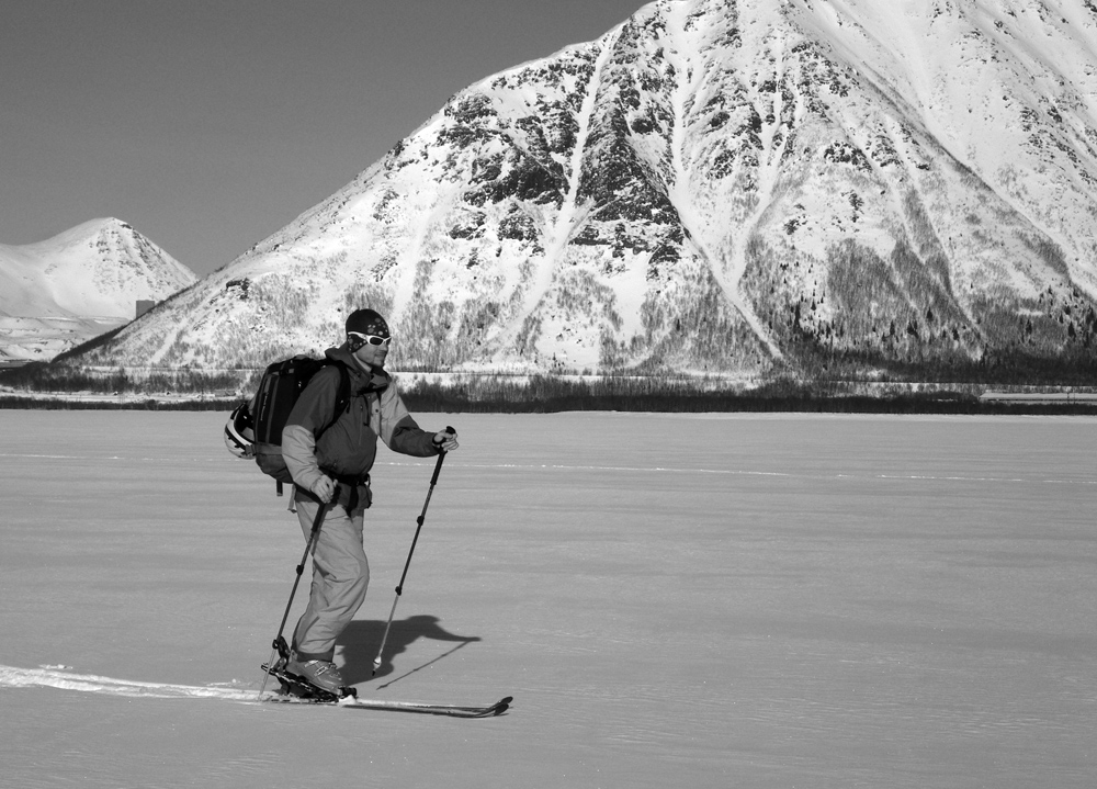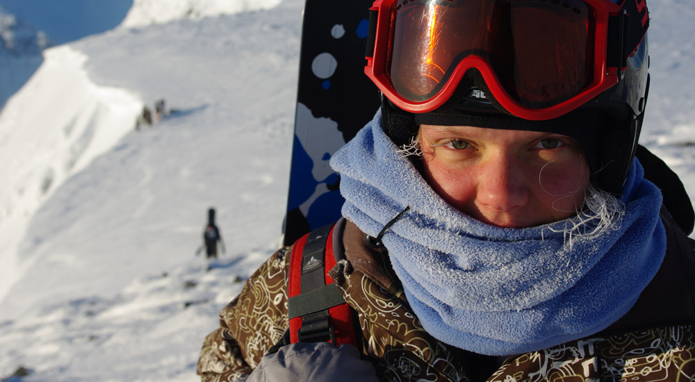 Вскоре оказалось, что в такой мороз можно не просто вполне комфортно кататься, но и часами тропить дорогу вверх, чтобы потом за 10 минут спуститься, испытав ни с чем не сравнимое чувство плавучести снаряда в свежем пушистом снегу и оставив свой собственный след в одном из заполярных кулуаров.