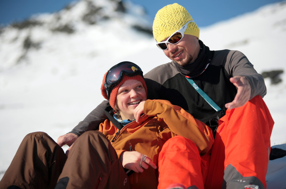 После возвращения в столицу все внутри тянуло меня обратно, как это часто бывает после самых душевных путешествий. Только теперь еще и крылья выросли - в общем, работать над дипломным проектом стало совсем непросто. К счастью, этот период был недолгим, и в начале марта мы отправились на традиционный семейный выезд в Альпы. На этот раз нас ждал прекрасный французский Тинь. Мы с Юркой с удовольствием применяли полученные знания на практике, а Андрей оценивал наши линии по фотографиям и зазывал на чемпионат по фрирайду “Khibiny Open Cup” в начале апреля. Месяц переписки по электронной почте - и я уже с предвкушением выглядываю в иллюминатор самолета Шереметьево - Апатиты. С этого дня мы живем вместе.