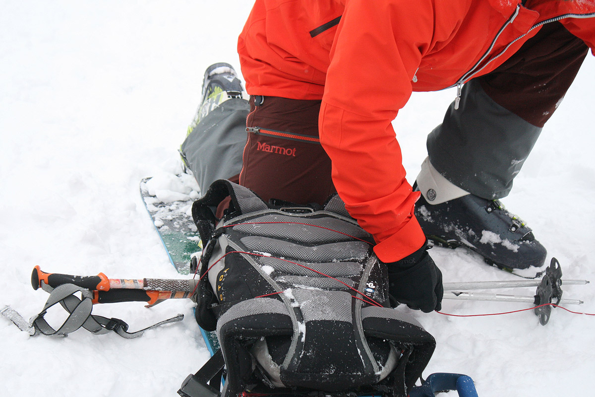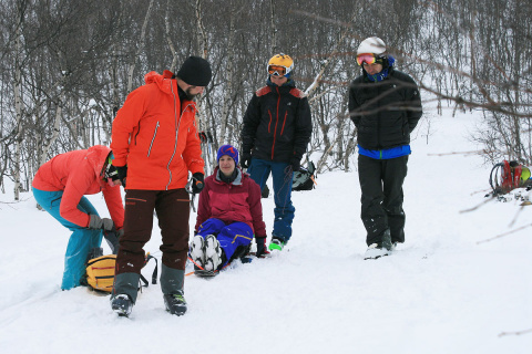 Подручные средства – это то, что есть в рюкзаке и на участнике при катании в группе вне трасс. Условно считаем, что пострадавший сам передвигаться не может, а для минимализма представляем, что спасательную операцию предстоит выполнять одному человеку.