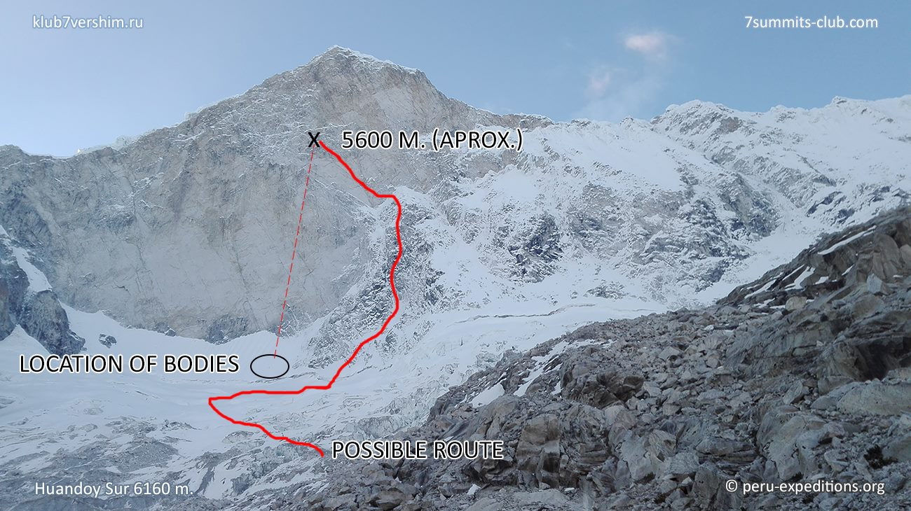 "По информации от местных гидов, которые помогали обеспечивать подход под маршрут горы Хуандой Сюр (6160 м), тела были найдены на высоте 5300. Погибли на спуске.