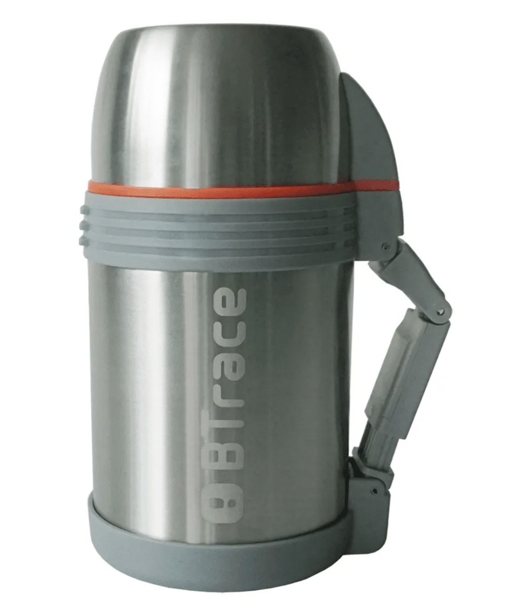 Двойные стенки термоса позволяют долго сохранять температуру, как холодного, так и горячего напитка. Корпус и внутренняя колба термоса изготовлены из высококачественной пищевой нержавеющей стали. Двойная широкая пробка термоса и его горловина, позволяют хранить в термосе, как напитки, так и еду. На боку корпуса расположена ручка, которая раскладывается и убирается одним движением.