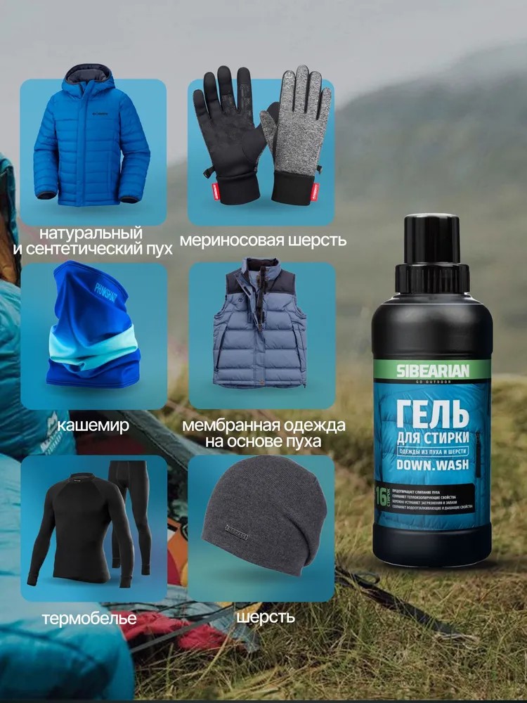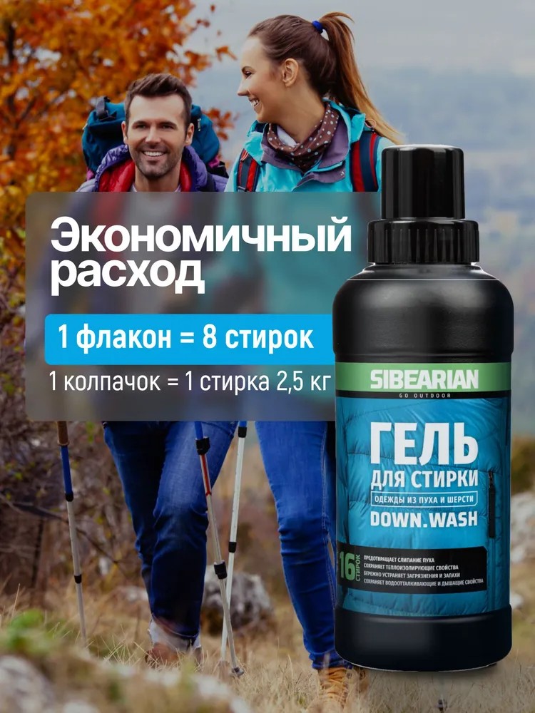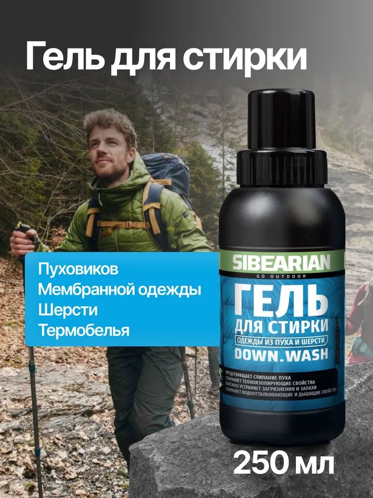 SIBEARIAN DOWN WASH – это гель для ручной и машинной стирки одежды и снаряжения из натурального и синтетического пуха, изделий из натуральной и искусственной шерсти, в том числе термобелья и других изделий из кашемира и мериносовой шерсти. Он бережно и эффективно удаляет загрязнения и запахи, сохраняя структуру и теплоизолирующие свойства пуха и шерсти. Сохраняет водоотталкивающие свойства пуха и мембранных тканей.