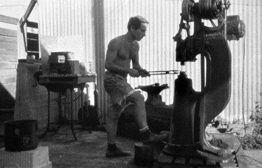Ивон Шуинар работает у механического молота