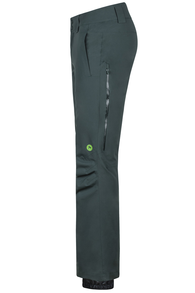 Ткань эластичная, так что даже со стандартным кроем комфортно двигаться как на лыжах, так и по скалам. Для регулировки температурного режима предусмотрены длинные боковые молнии в верхней части бедер.