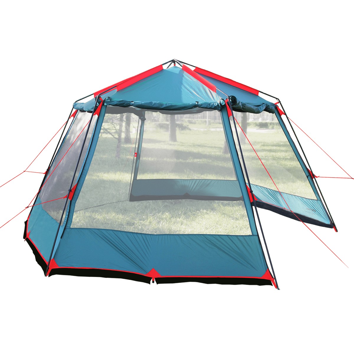 Палатка-шатер BTrace Highland рассчитана на отдых большой компанией. Благодаря солидному размеру и высокому потолку в ней можно разместить за столом до 8 человек. Идеально подходит для организации общей столовой или зоны отдыха, может использоваться в качестве летней беседки на даче. Оборудован москитными сетками для защиты от насекомых, большими панорамными окнами и убирающейся защитой от дождя.