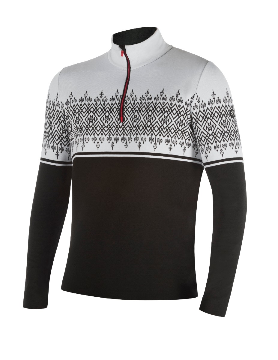 Трикотажный пуловер на 1/2 молнии выполнен из материала DHtech 400. Отлично смотрится классический норвежский геометрический узор . Идеально как второй слой для любого вида физической активности в холодную погоду.