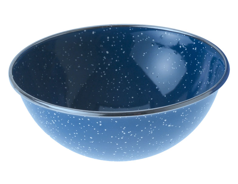 Глубокая, прочная эмалированная миска с ободком из нержавеющей стали пригодится всем, везде и всегда.