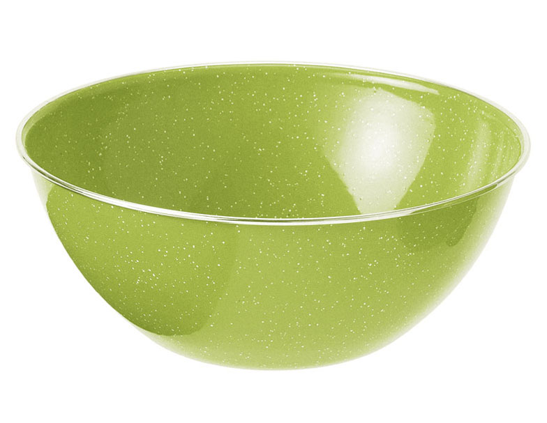 Глубокая эмалированная миска со стальным ободком приживется в хозяйстве каждого любителя кемпинга.