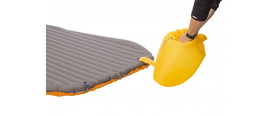Чтобы надуть/сдуть и упаковать SIM 5 M, не нужно прикладывать много усилий. В коврике установлен один универсальный низкопрофильный клапан для надувания и сдувания. В качестве утеплителя используется вспененный полиуретановый наполнитель.