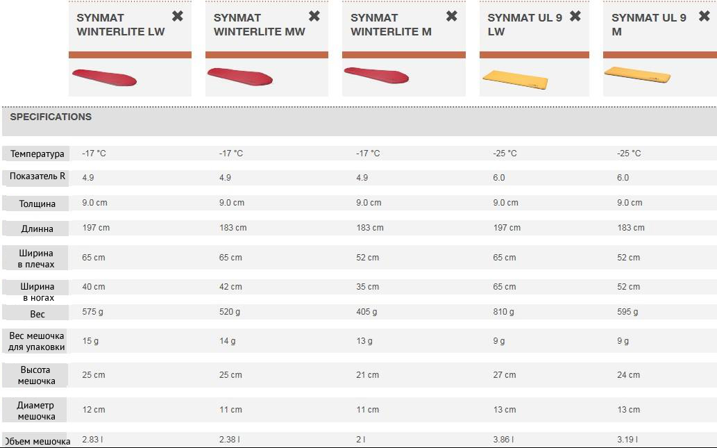 Но если ваш рост выше 175 см, то лучше взять широкую (MW) или длинную и широкую версию (LW) коврика Winterlight. Ракетообразный верх красив, но разместить на нем подушку бывает проблематично. В крайних секциях утеплителя нет, в остальных он вклеен между верхней и нижней поверхностью.