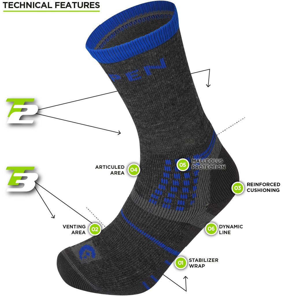 Т2 - сочетание в одной пряже двух типов волокон, используемых в зависимости от назначения носков. Внешний слой - износостойкий полиамид, внутренний - волокна Primaloft для отведения влаги
