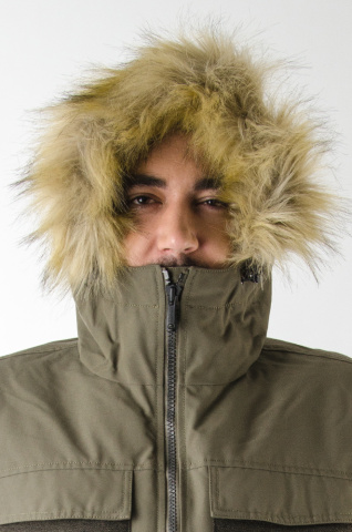 Куртка снабжена вместительными карманами, удобным теплым капюшоном со съемной меховой опушкой, мягкими трикотажными внутренними манжетами и широкими внешними манжетами на надежной липучке Velcro®.