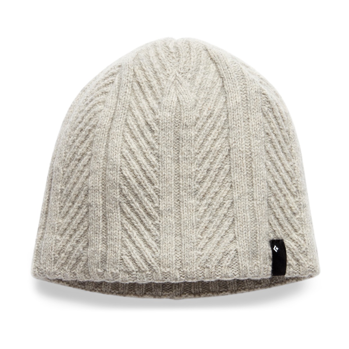 Женская шапка с диагональным узором вязки плотно облегает голову и согреет зимой благодаря подкладке из микрофлиса.
