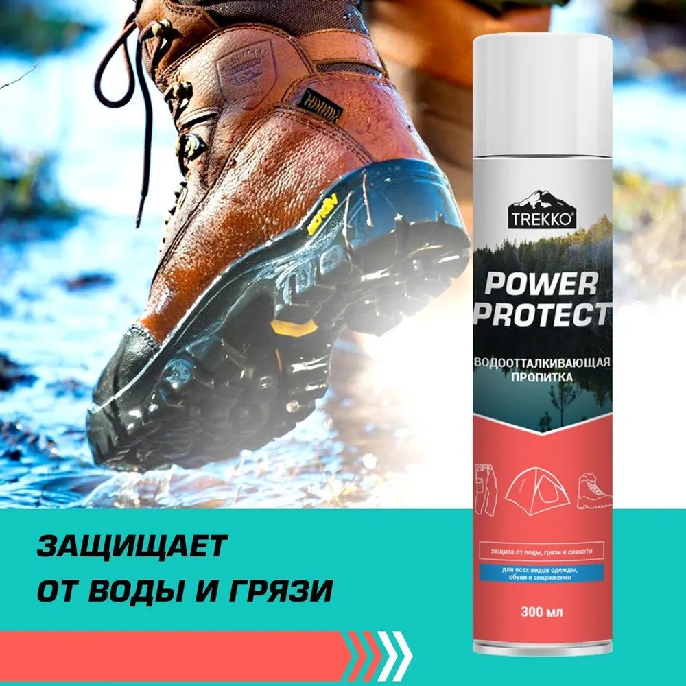 Trekko Power Protect – это водоотталкивающая пропитка для одежды, обуви и снаряжения от воды, грязи, реагентов и соли. Подходит для натуральных и синтетических тканей, замши, нубука и мембран. Сохраняет дышащие свойства, цвет и текстуру материалов. Восстанавливает водоотталкивающие свойства вещам с заводской пропиткой.