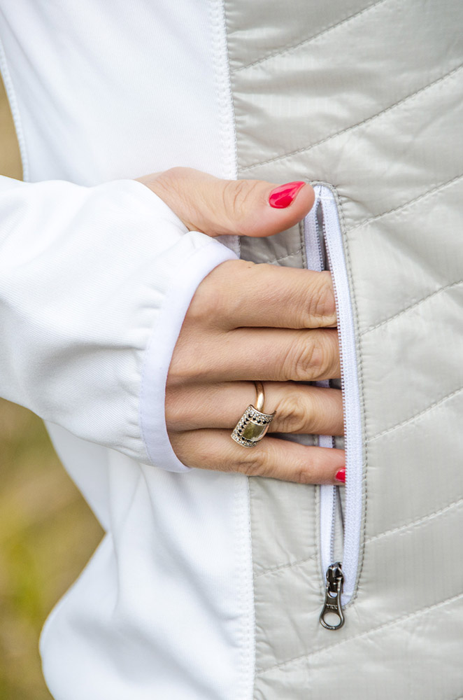| Два боковых кармана на молнии для рук и один внутренний карман на молнии. | |